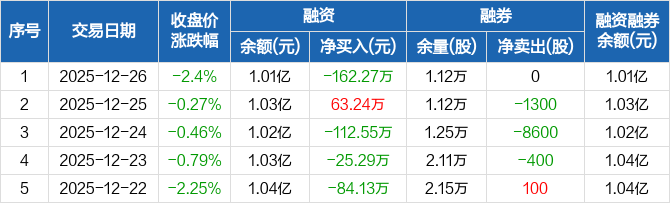 太平鸟:融资净偿还162.27万元,融资余额1.01亿元(12-26)