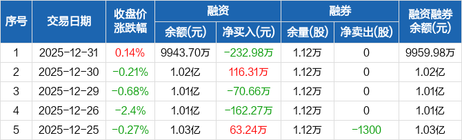 太平鸟:融资净偿还232.98万元,融资余额9943.7万元(12-31)