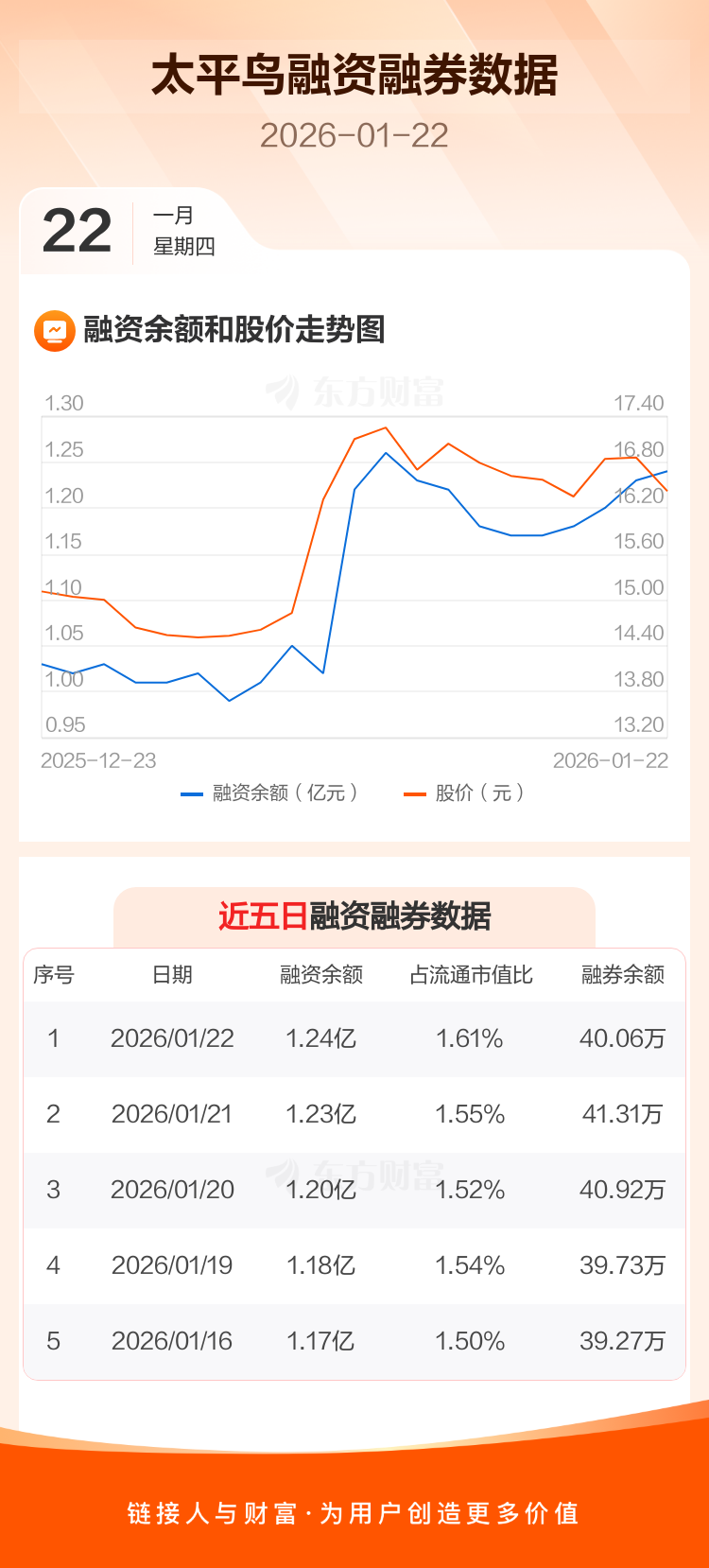 交易所最新数据显示,太平鸟于2026年1月22日获融资买入533.34万元,融资偿还651.12万元,当日融资净偿还117.78万元。目前,该股融资余额1.24亿,占流通市值比例为1.61%。