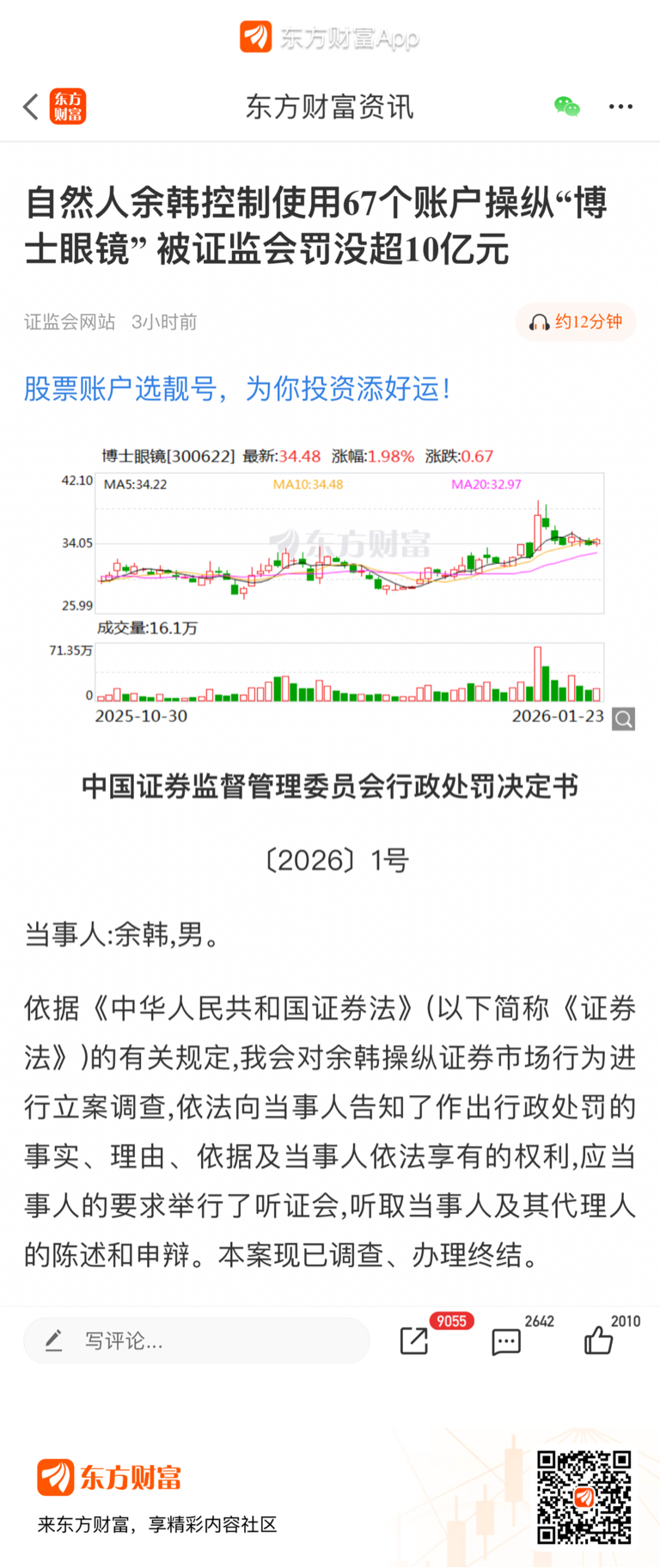 刚刚,证监会重罚股价操纵案例,这个余某估计也是个倒霉蛋,被证监会当作典型给各老庄