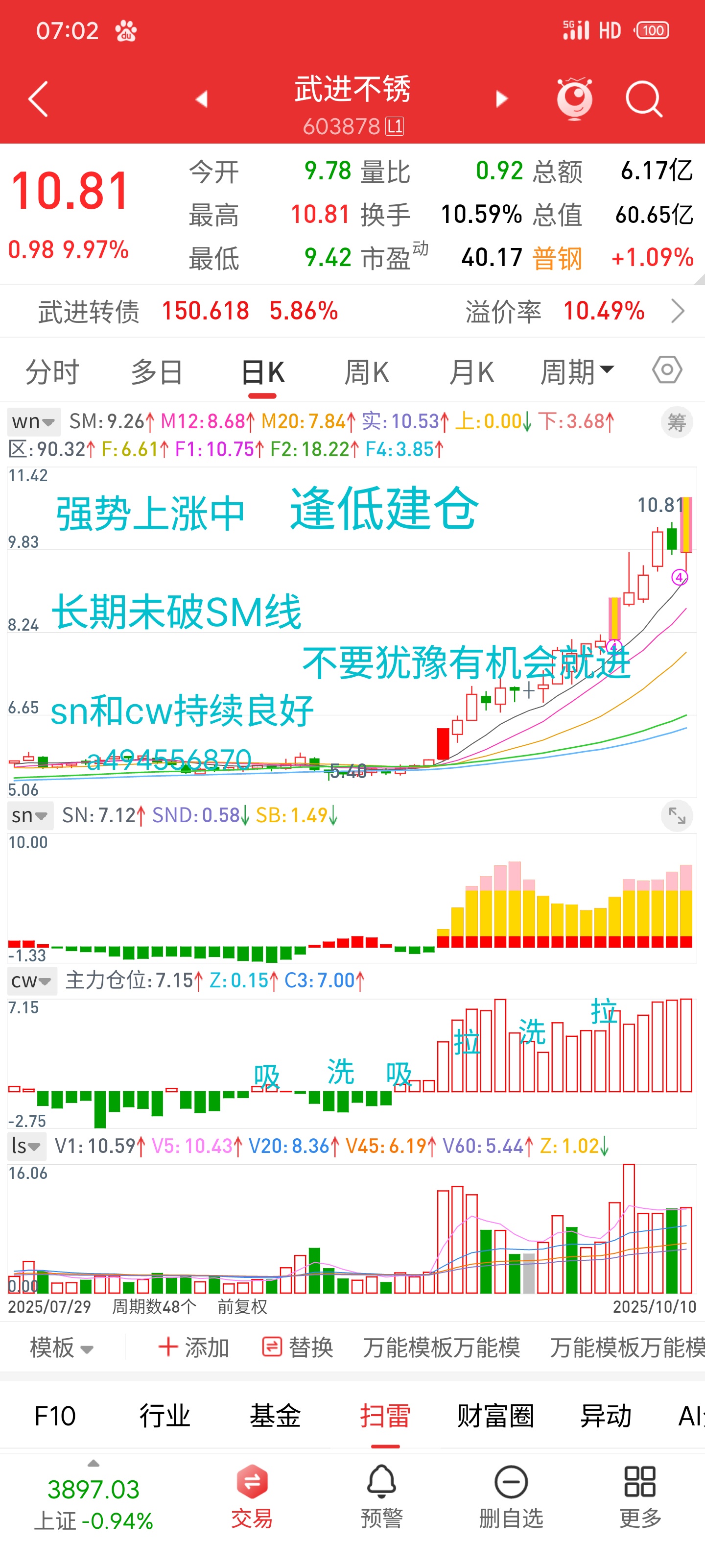 武进不锈sn和cw持续良好,一个字进