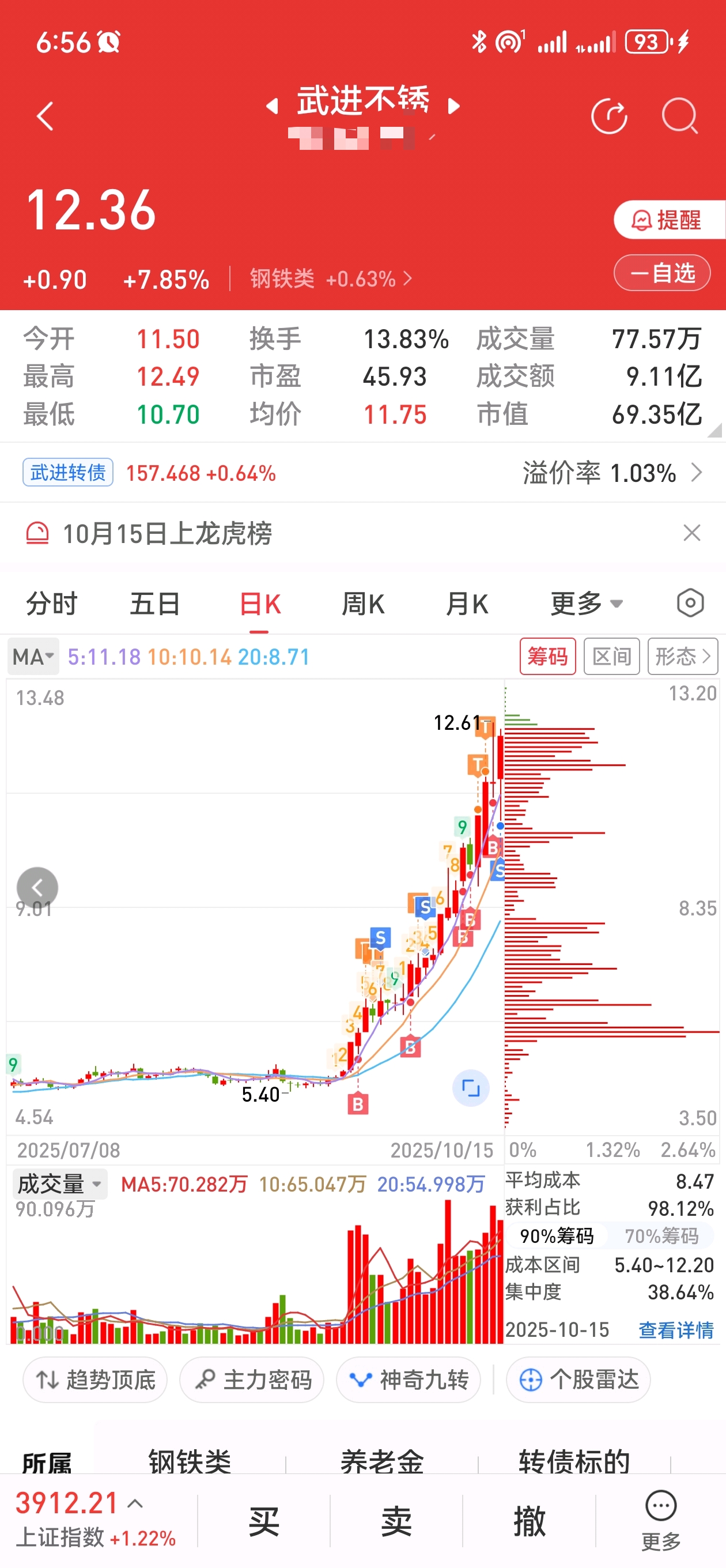 $武进不锈(SH603878)$ 几进几出~就是拿不住,跌时拼命加仓,升一点就拿不住!
