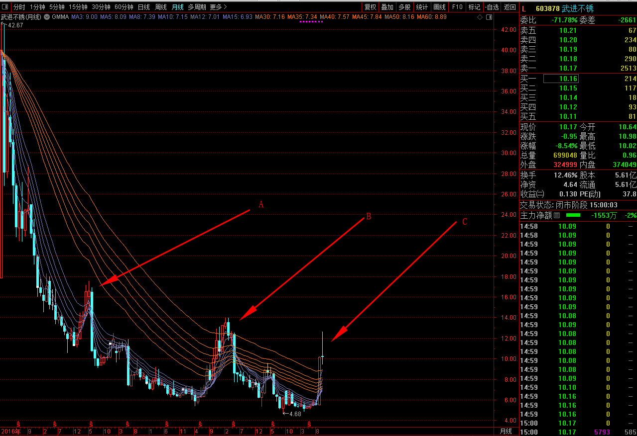 问题是该股升幅过大,9月份升幅84.87%,10月份“”死亡攀登高度12.61元“”。再次升幅31.37%。我认为无论如何庄家必须消化10.31元以上追高的游资。