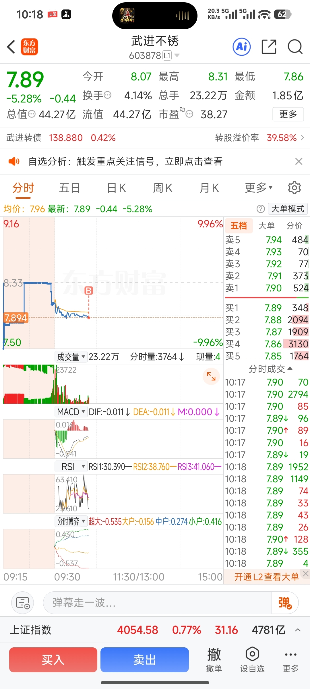 $武进不锈(SH603878)$ 完了,不小心买进了