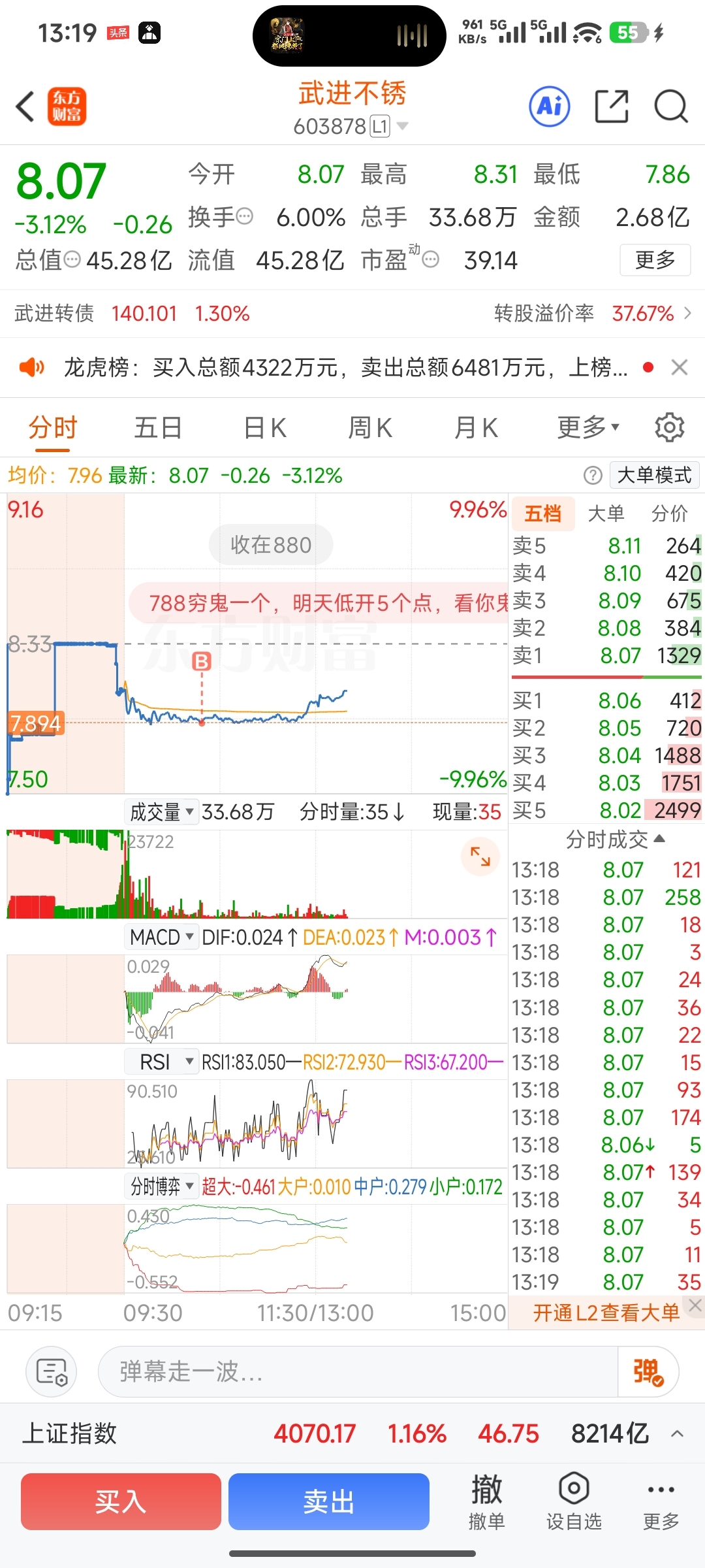 $武进不锈(SH603878)$ 7.89买入,是个好兆头