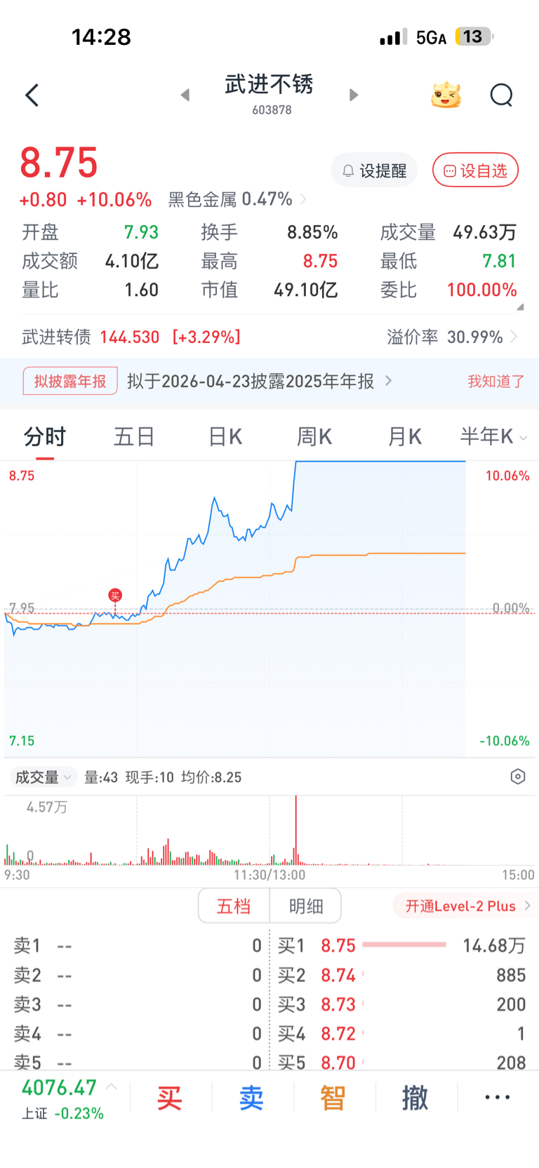 $武进不锈(SH603878)$