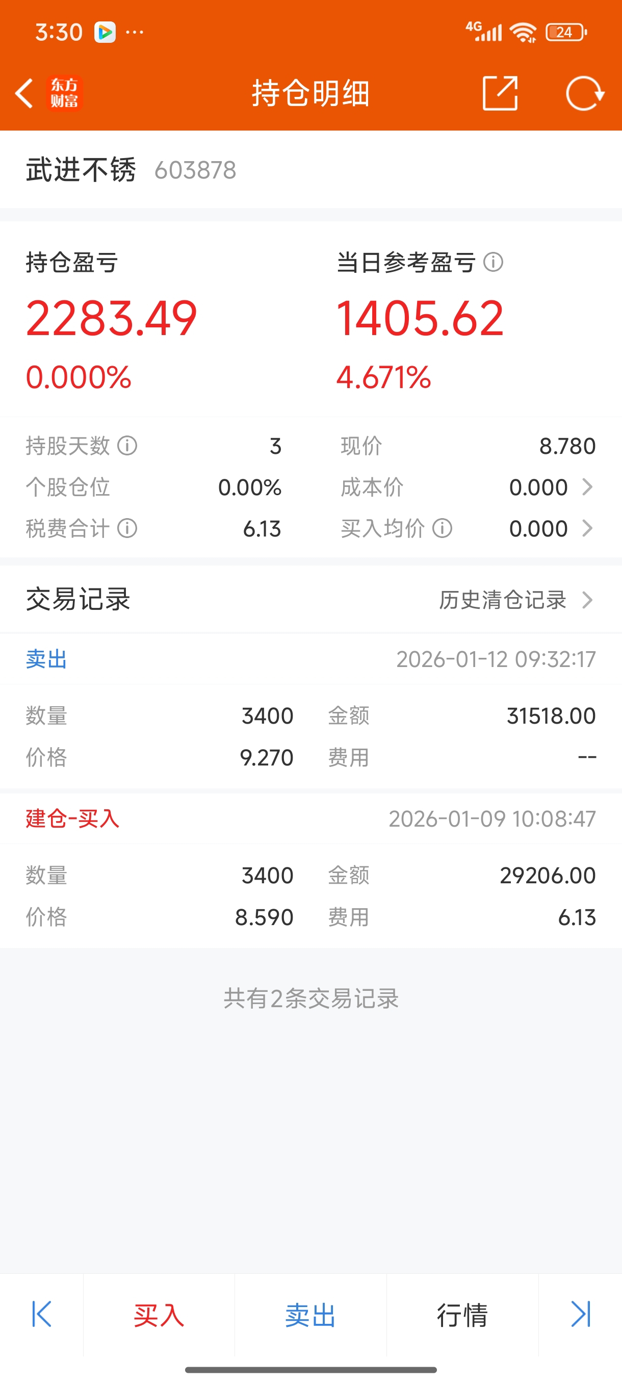 $武进不锈(SH603878)$ 小赚一点,兄弟们,我先走了。明天进银行股里面了。
