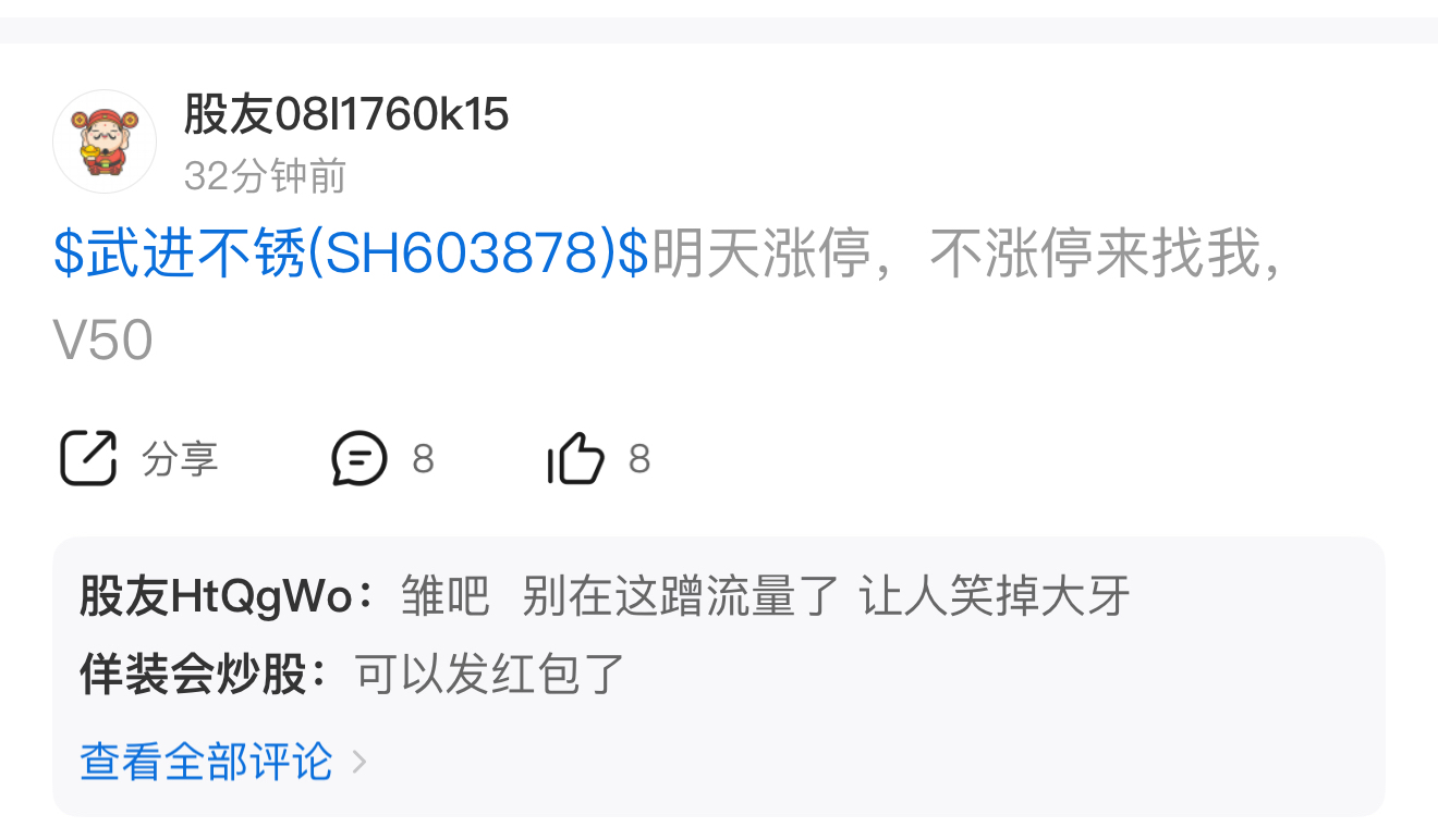 $武进不锈(SH603878)$ 这哥们人呢