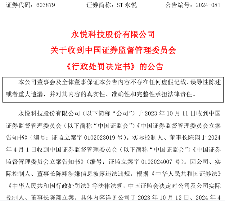 永悦科技(603879)2024年8月16日被处罚,股民可索赔。