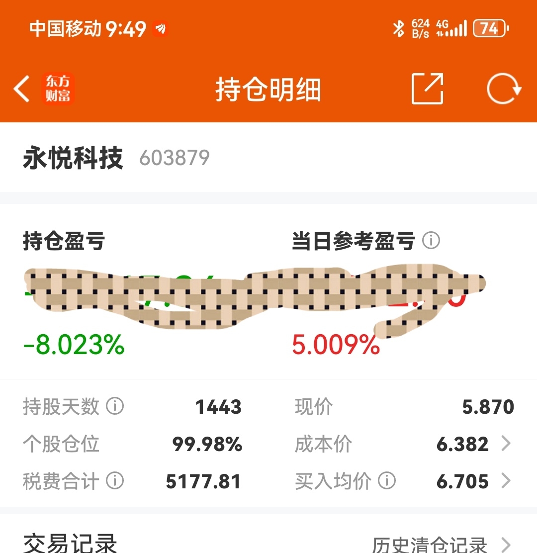 $永悦科技(SH603879)$ 就凭我拿的这1400多天量化也割不动我