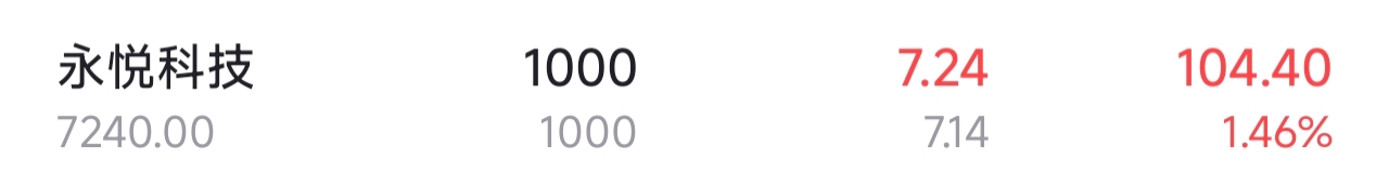 $永悦科技(SH603879)$ 昨天买的,记录已经吃肉中。涨停就卖。