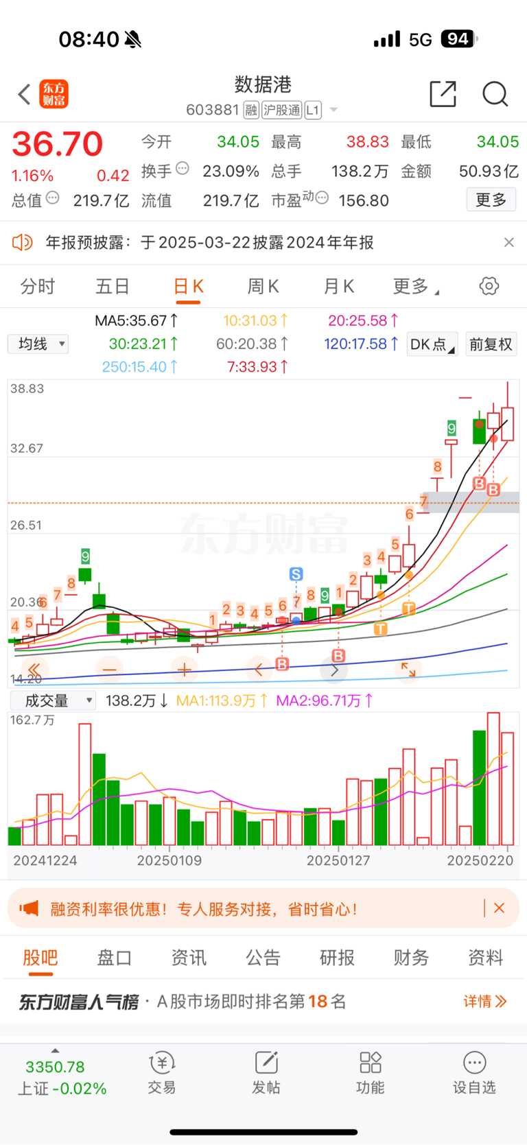 $数据港(SH603881)$ 卖飞了3几个点终于找机会买回来了哎