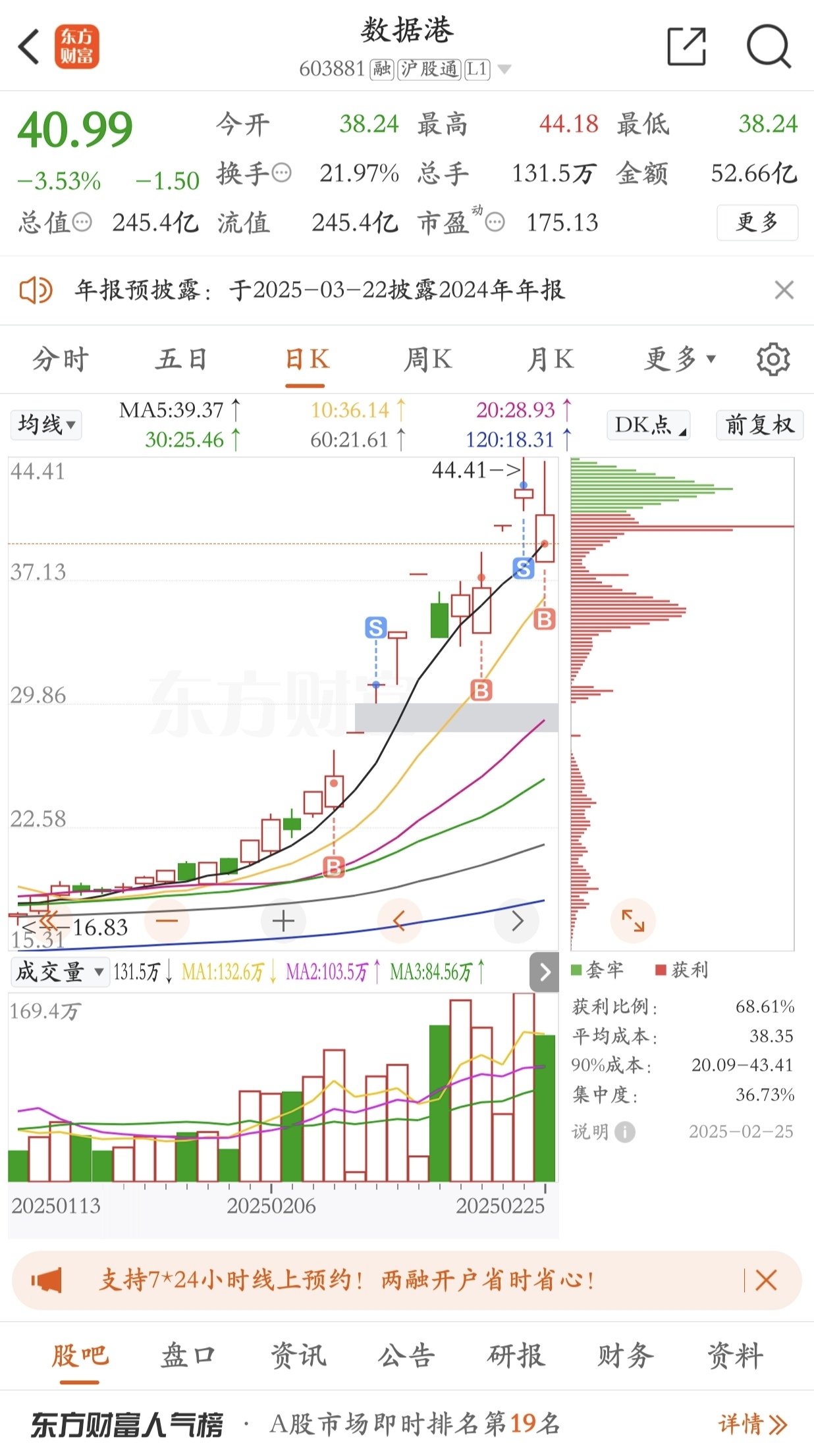$数据港(SH603881)$ 数据港,二月份的账户盈利全靠你撑着在,爱你
