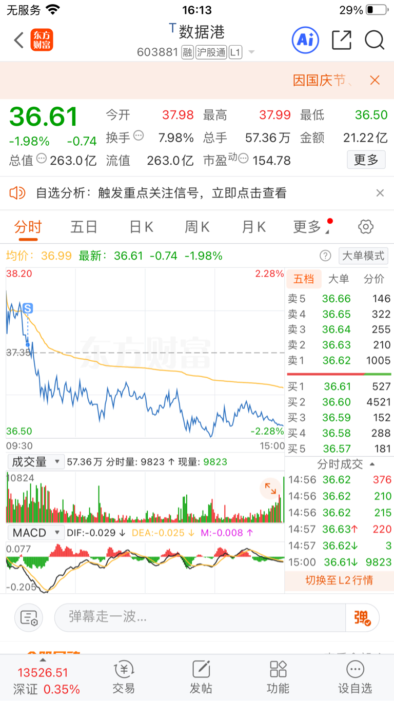 $数据港(SH603881)$ 数据租赁公司看来确实不行啊,拿了很长时间,高部没跑,看着走势疲软彻底清仓了。太英明了,整体数据租赁公司很长时间是起不来了。