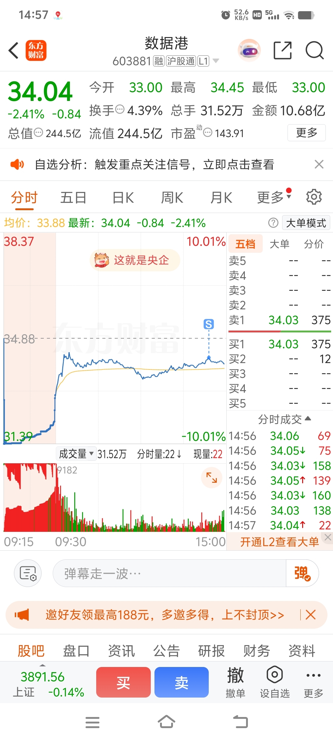 $数据港(SH603881)$ 去,格局几天亏了10个点,先出来,没跌完,明天低开再来