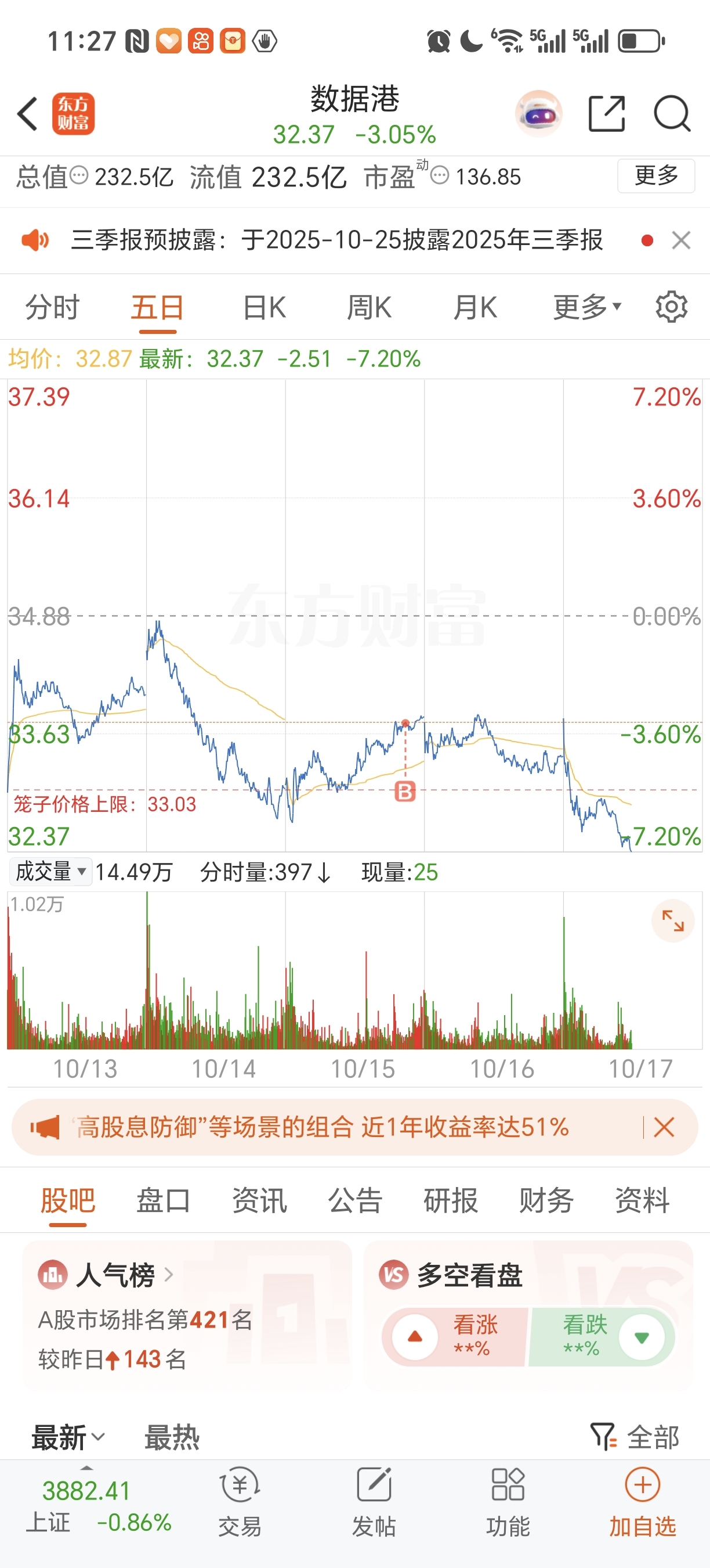 $数据港(SH603881)$ 有本事你就给我跌倒破产