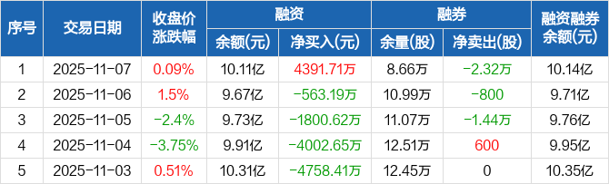 数据港:融资净买入4391.71万元,融资余额10.11亿元(11-07)
