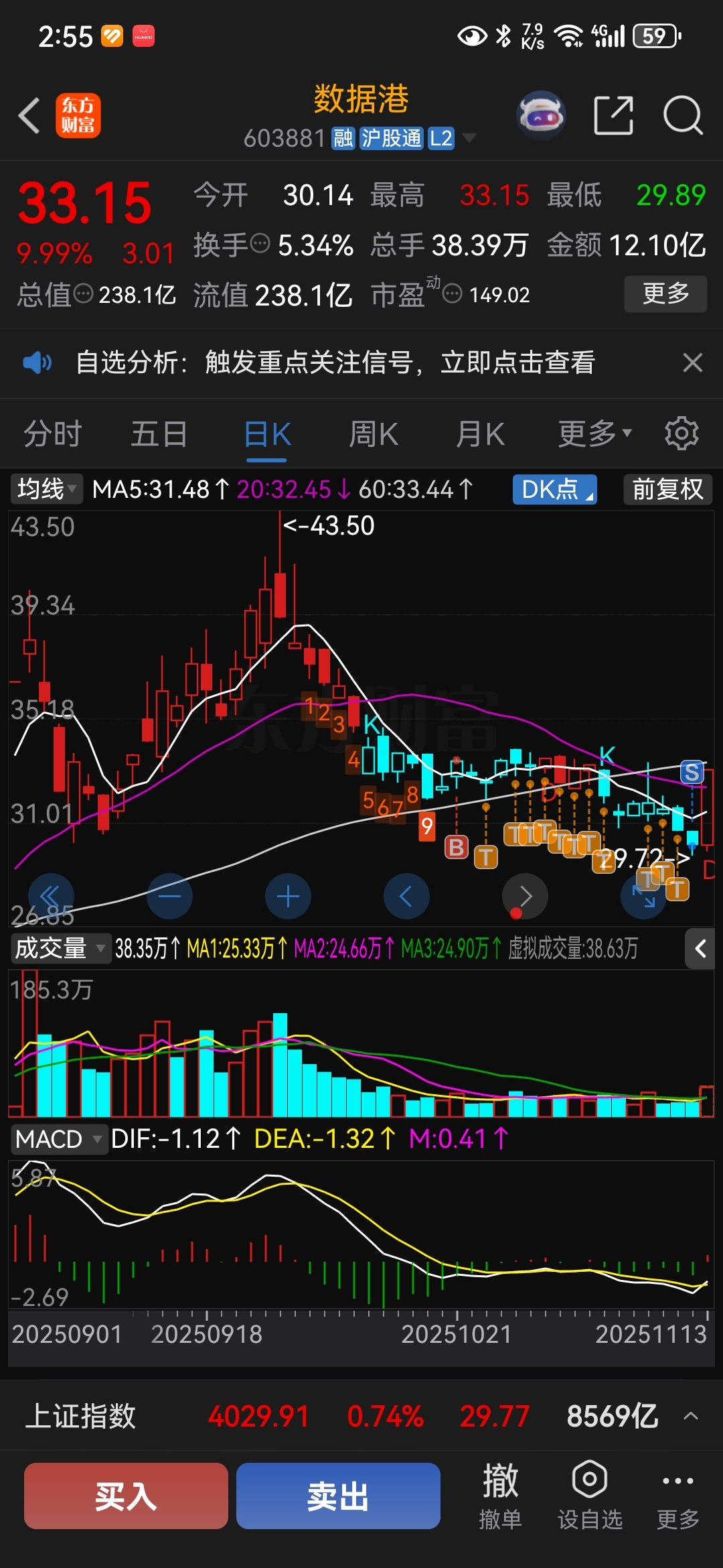 $数据港(SH603881)$ 太难受了,昨天到止损点清仓了,结果今天直接干涨停了
