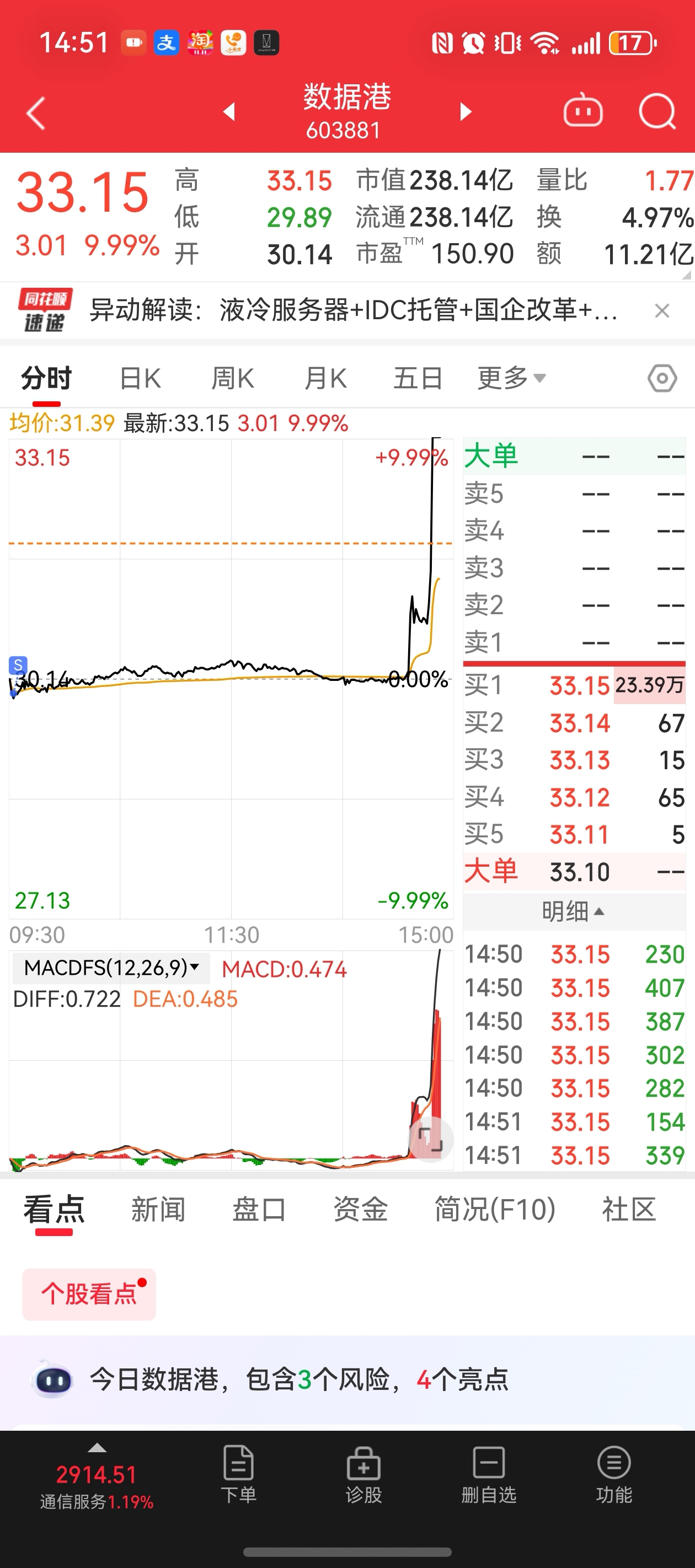 $数据港(SH603881)$ 淦霖酿的 拿了半个月亏了10多个点 早上卖了 尾盘涨停