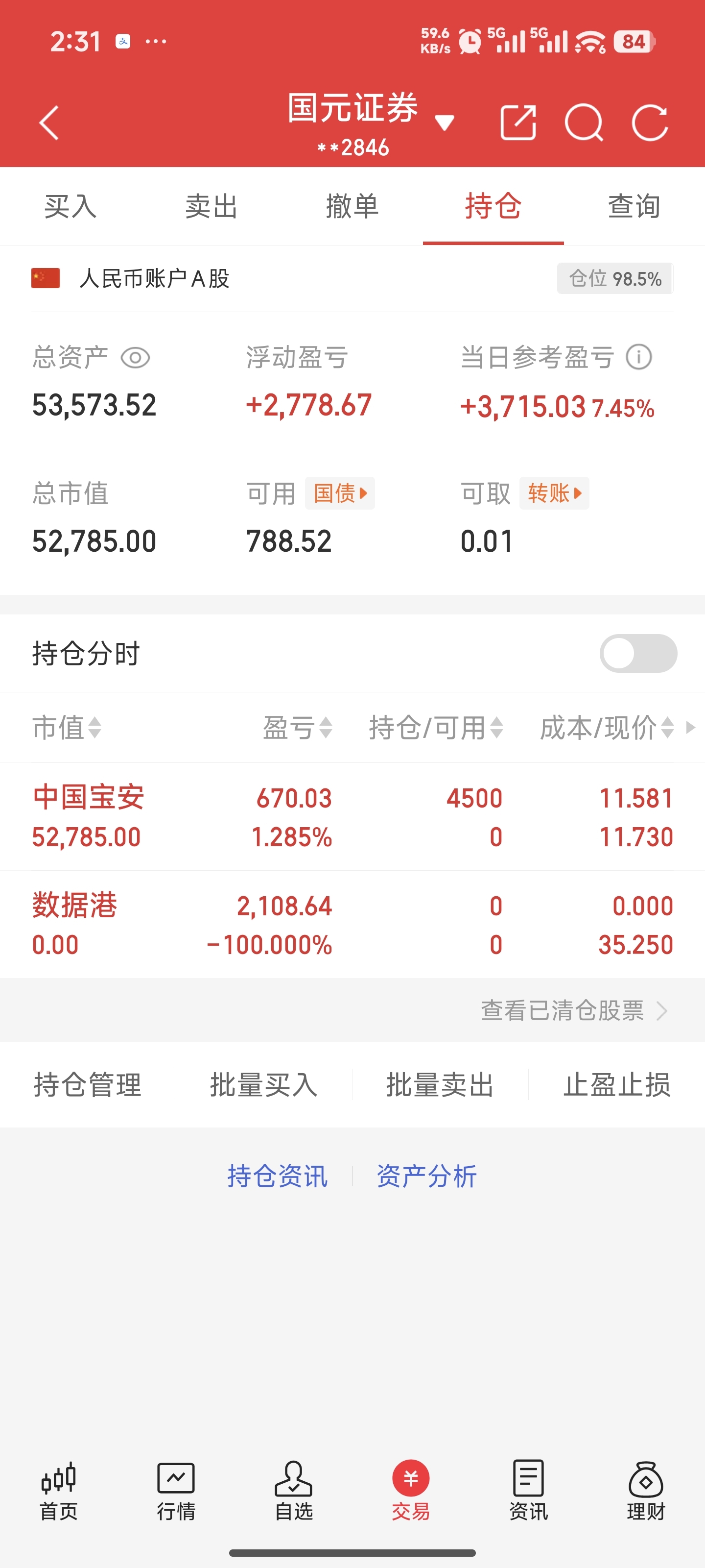 $数据港(SH603881)$ $中国宝安(SZ000009)$ #社区牛人计划# #聊操作:晒实盘,分享策略找机会# 出数据港,进中国宝安了,数据港压力还是有点大,明天看情况接不接回来了。中国宝安大概率炒玄学?反正跟就行了
