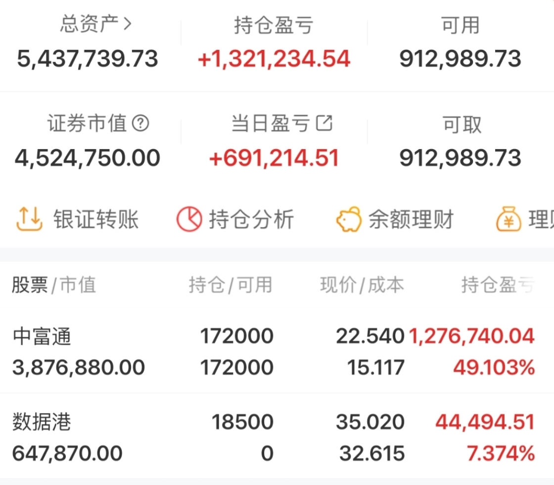 $中富通(SZ300560)$ $数据港(SH603881)$ 实盘记录200个本炒股之旅(第127天)