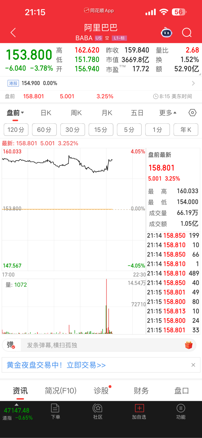 阿里巴巴现在已涨3个多点,明天数据港涨停,图片为证