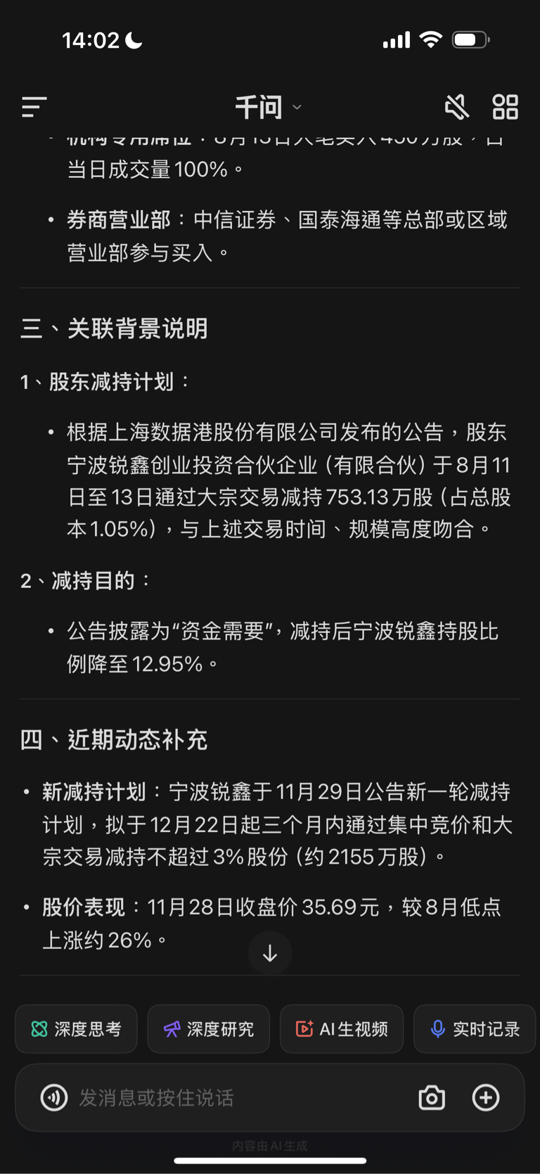 $数据港(SH603881)$ 周一高开高走,买进去就不错了,当然了,唱空做多,都希望别人卖给自己的心态可以理解,虽然卑微,但是符合国人本色。和三江一个德行,机构换手,不断抬高股价,减持暴涨概念正式启动。