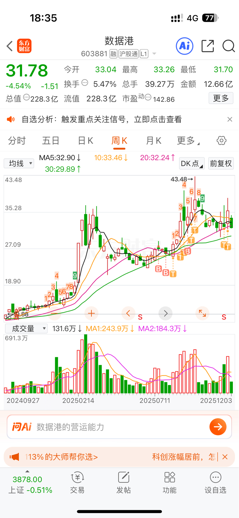 $数据港(SH603881)$ 大股东都在抛弃你,我还有什么理由再坚持持有你#炒股日记#