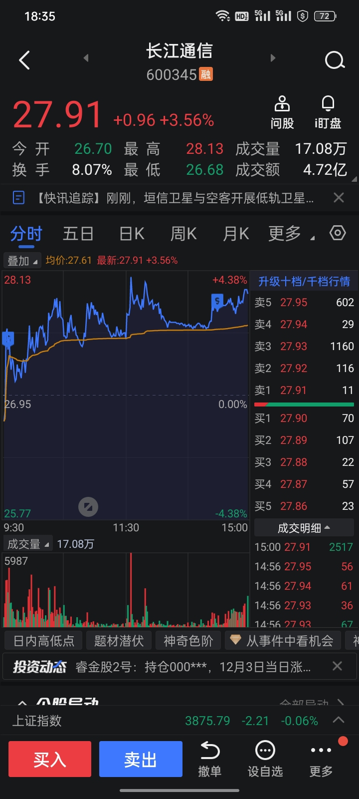 今天数据港盘中做t,航天宏图和长江通信,边做T边逢高减仓昨天加仓部分