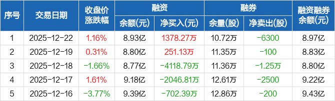 数据港:融资净买入1378.27万元,融资余额8.93亿元(12-22)