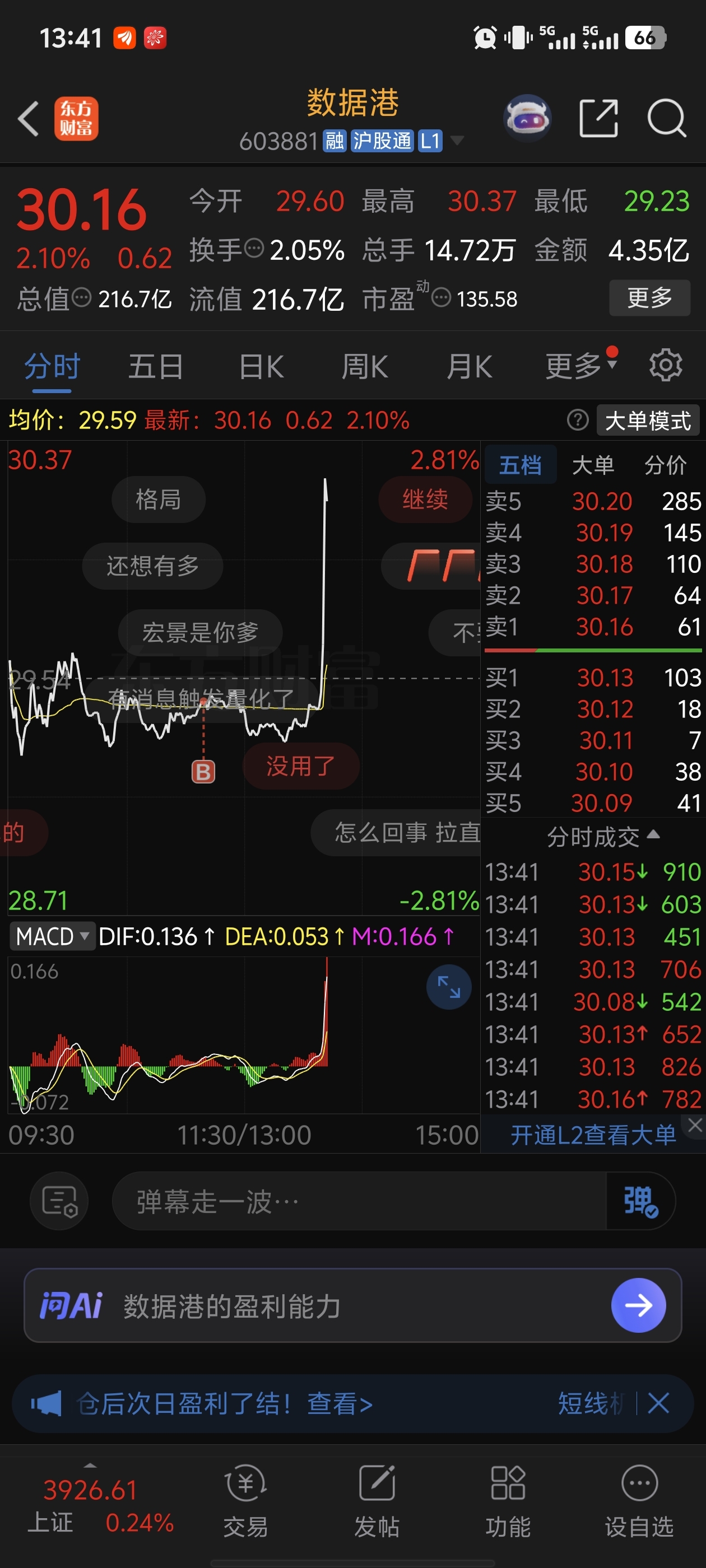 $数据港(SH603881)$ 搞莫比啊,别再冲高回落了吧
