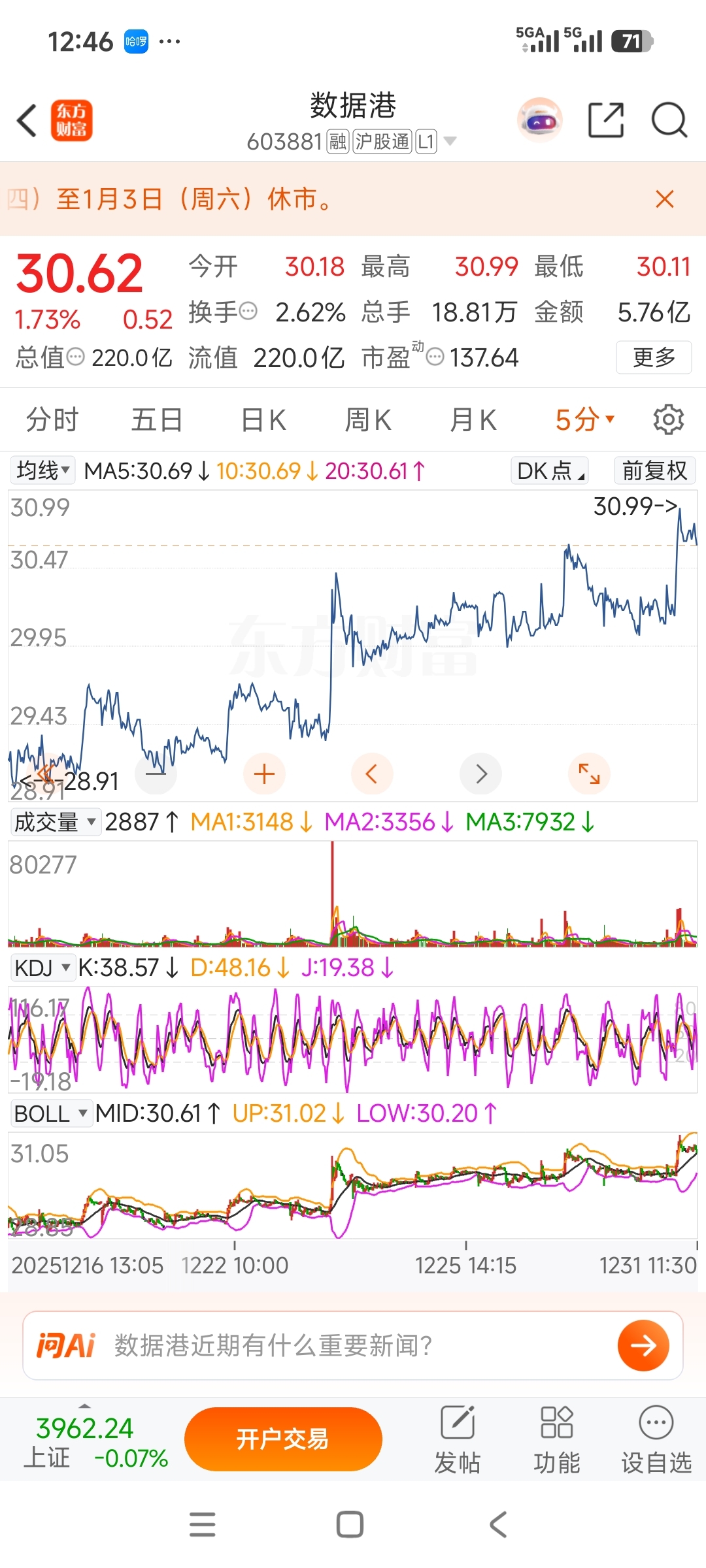 $数据港(SH603881)$ 猛拉一下,然后歇两天,忽然又猛拉一下。作T,很有规律。