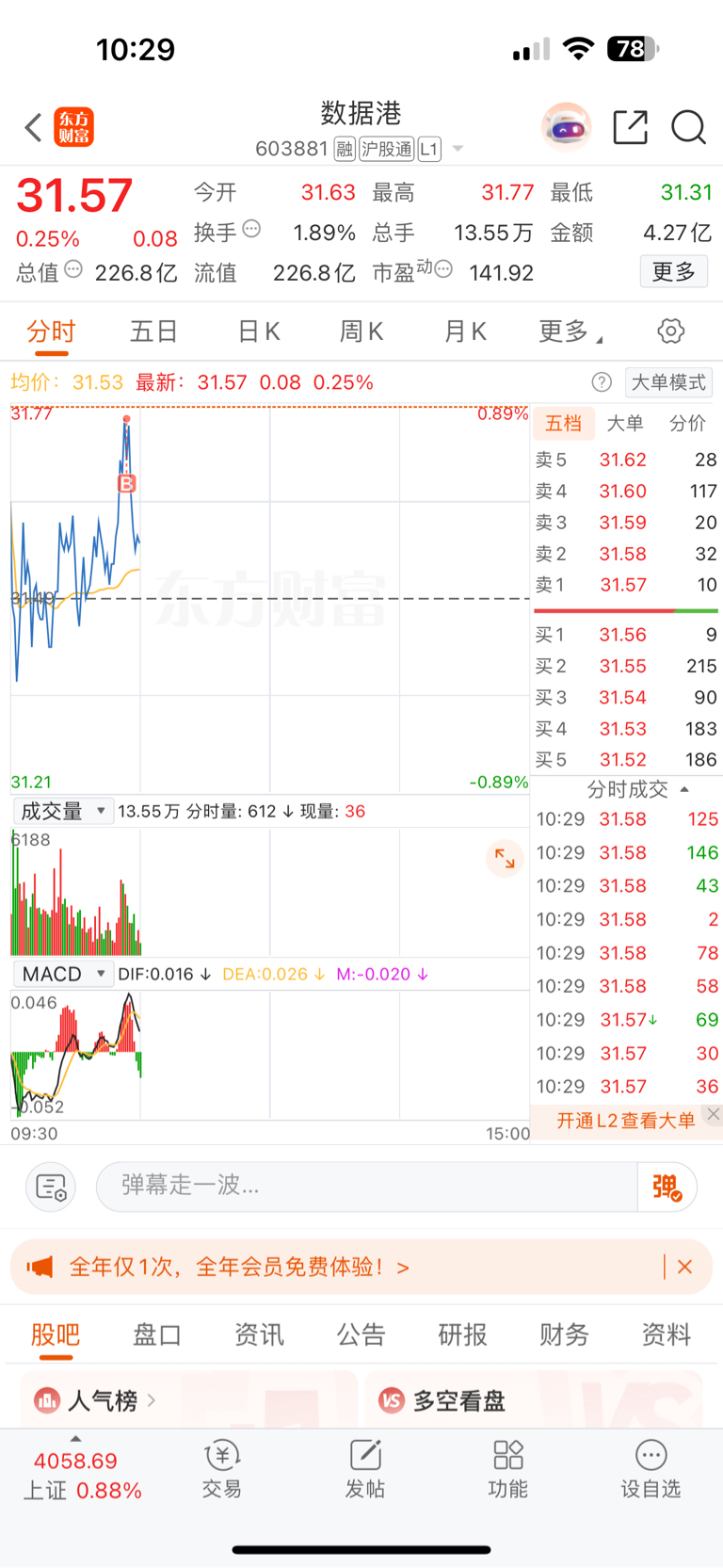 $数据港(SH603881)$ 买一手打压主力。