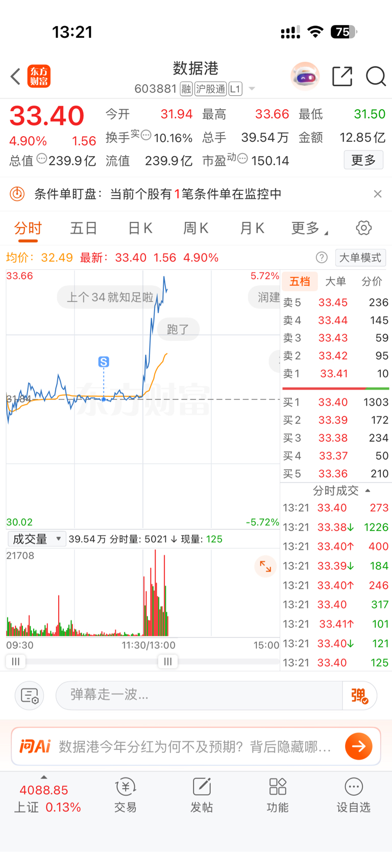 本来止盈就放在33.4的.靠