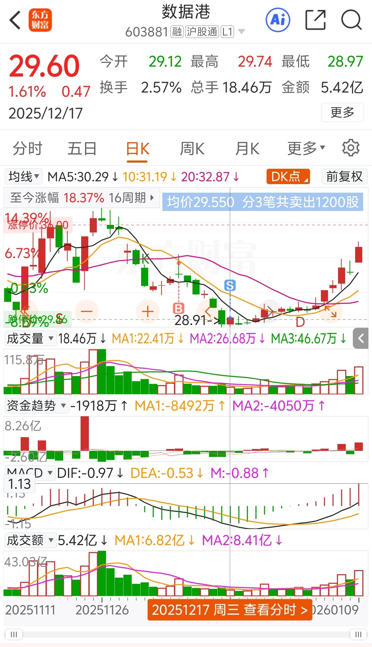 $数据港(SH603881)$ 老子高位买入你被套,低位卖出以后你立马支棱起来涨起来了真晦气成心跟我对着干永久拉黑删除自选