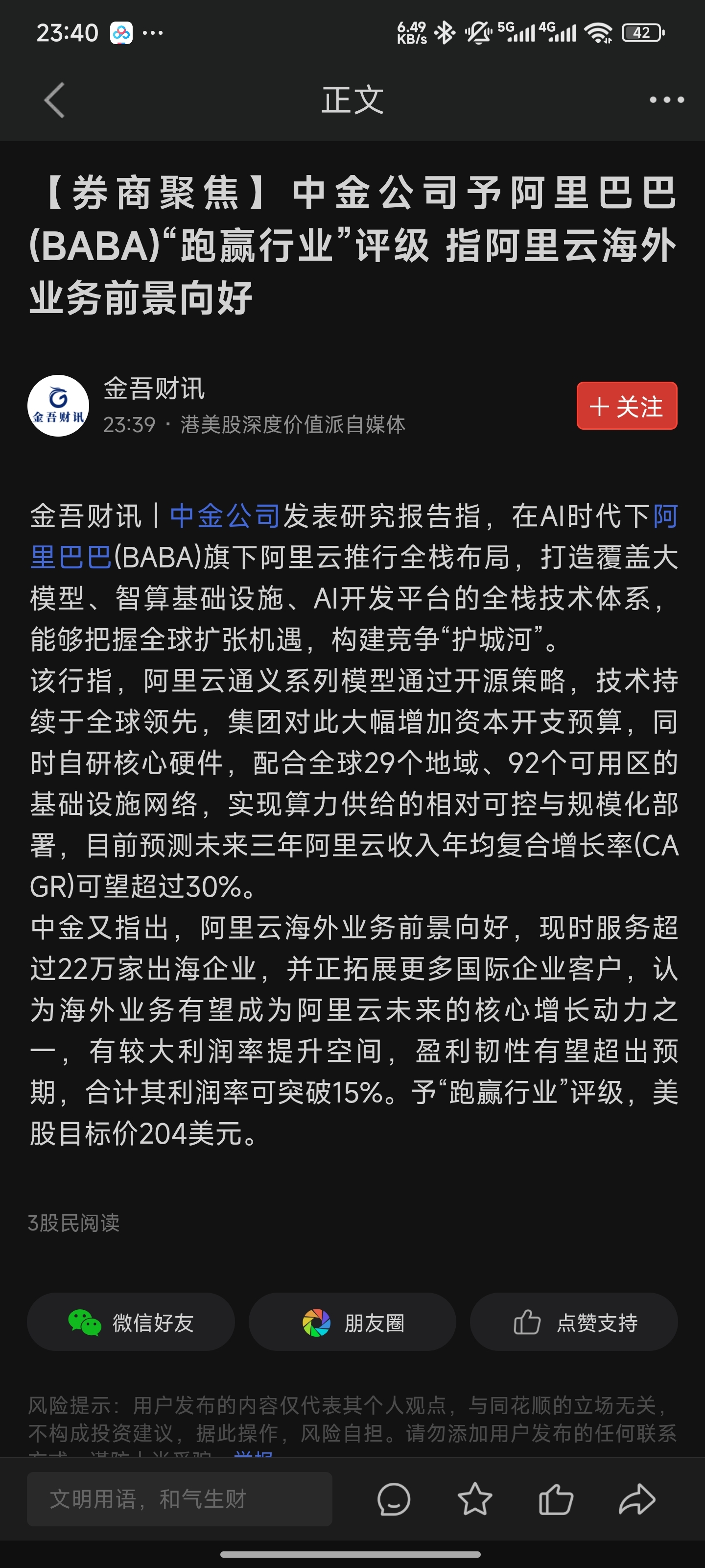 继续锁仓,明天敢跌我就真打满全仓了,阿里都因为阿里云业务目标价被评定到200了,