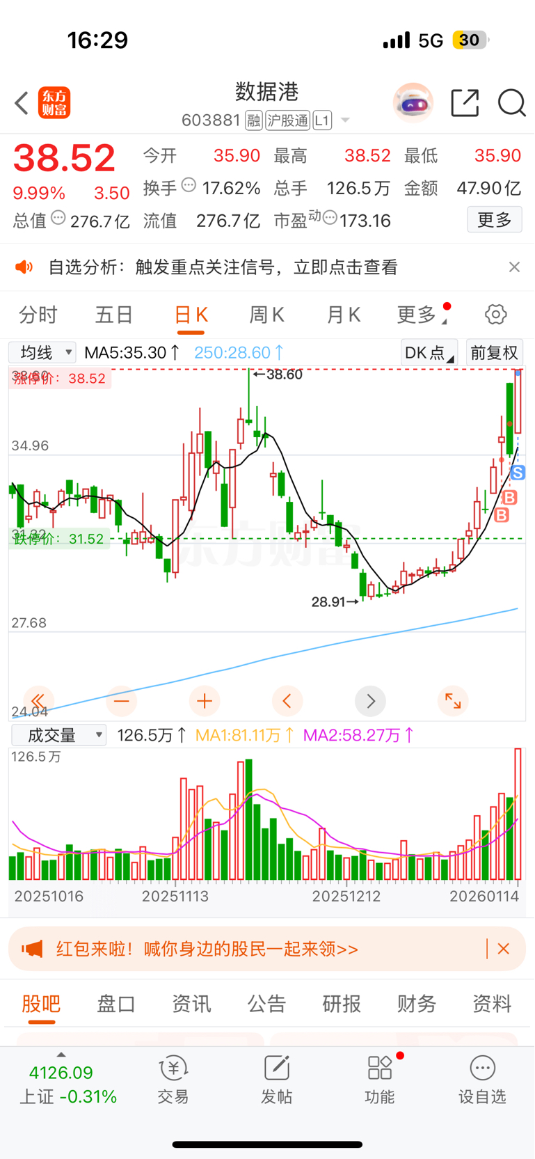 $数据港(SH603881)$ 今天把我洗出来了,也不知道对不对