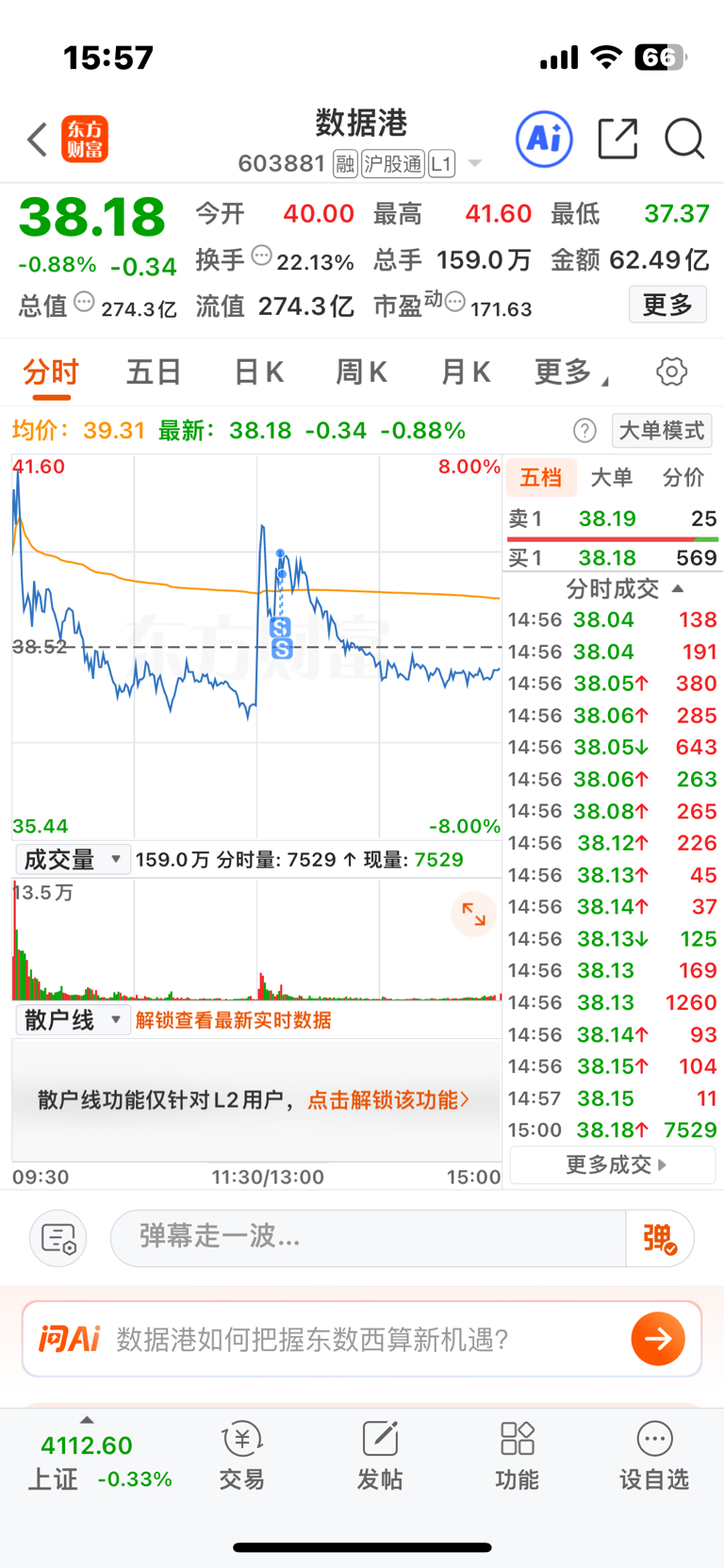 $数据港(SH603881)$ 本人因年底需要准备年货,减持了70%仓位的数据港,2400股,占比70%,大股东减持大家需注意,好好的过个肥年,股市不缺机会!
