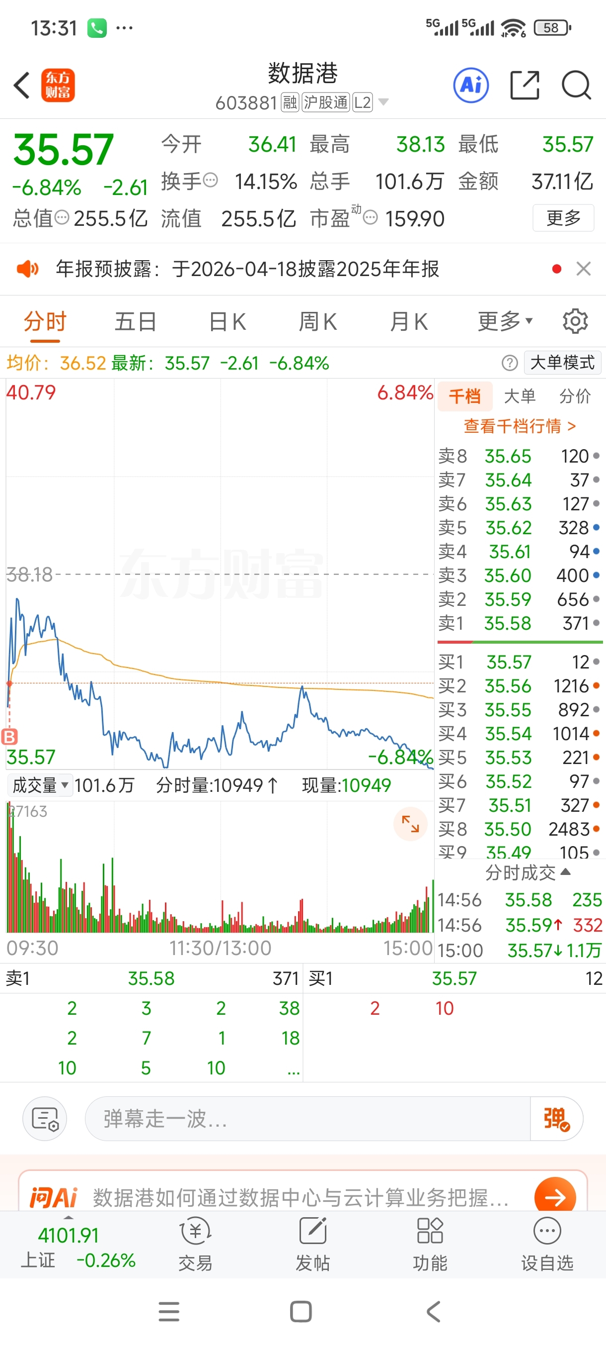 $数据港(SH603881)$ 忍不住手,感觉好难喔