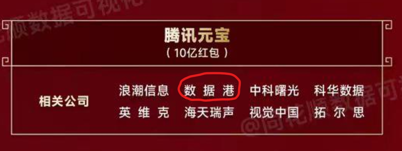 马年春晚,腾讯元宝10亿红包抢流量入口,数据港核心龙头,短期翻倍可期