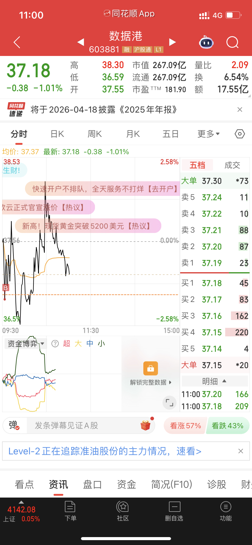 $数据港(SH603881)$ 今天要是能跌到我买的这里,是你的本事