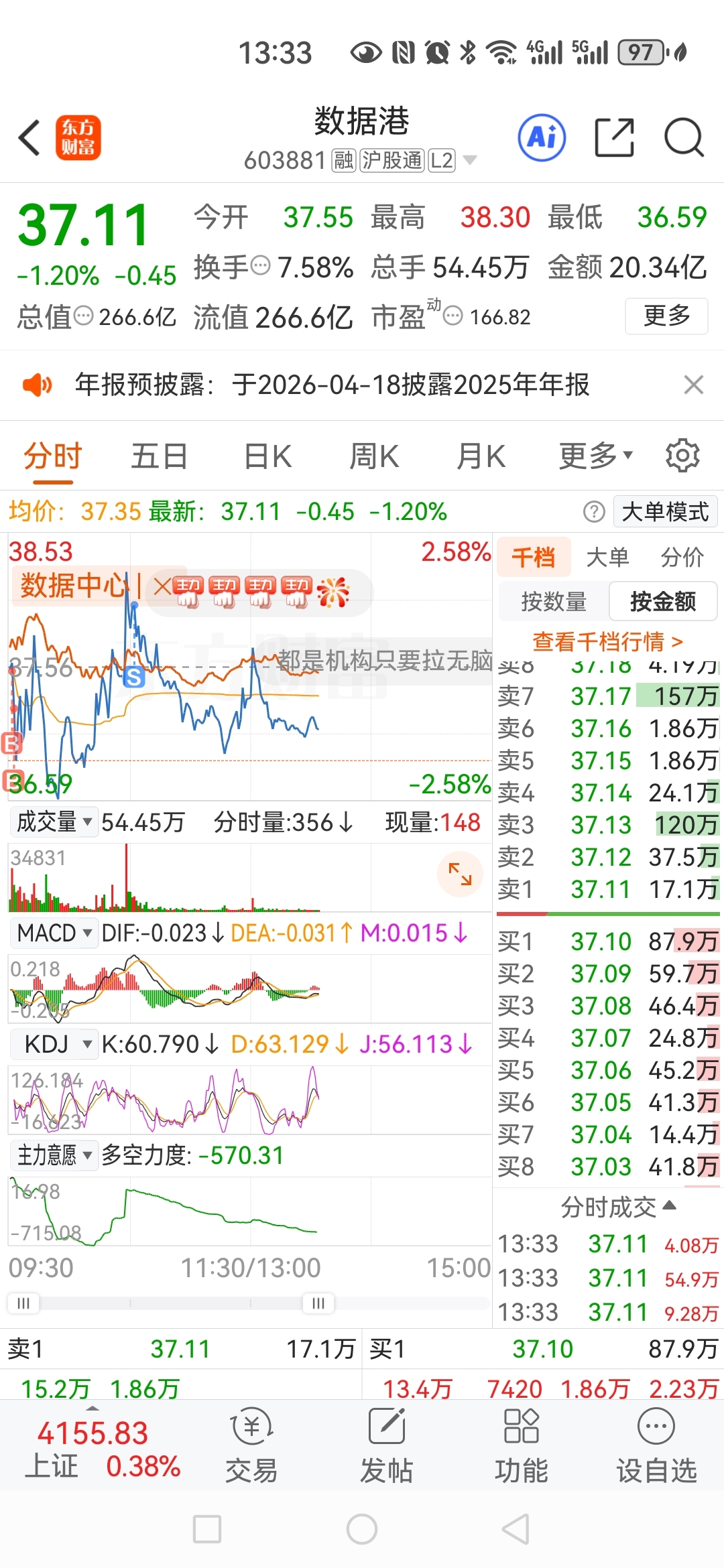 $数据港(SH603881)$ 得瑟一下,主力随你便,你涨我便出,你跌我就补
