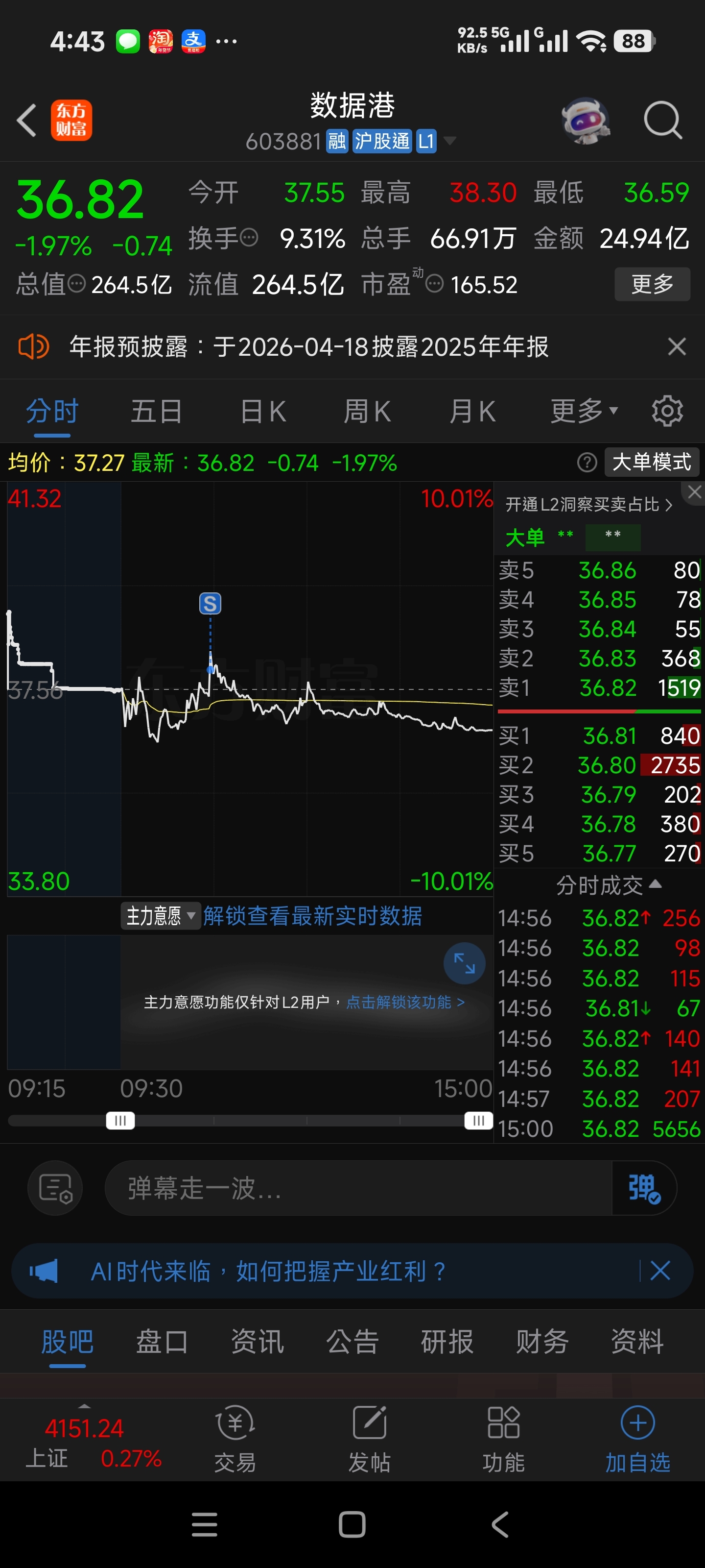 $数据港(SH603881)$ 够本跑了,黄金太强题材废了