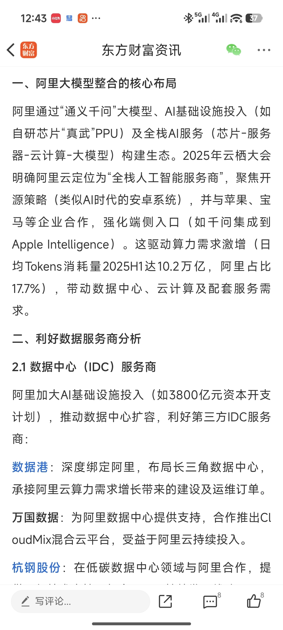 $数据港(SH603881)$ 明天再跌就真没话说了