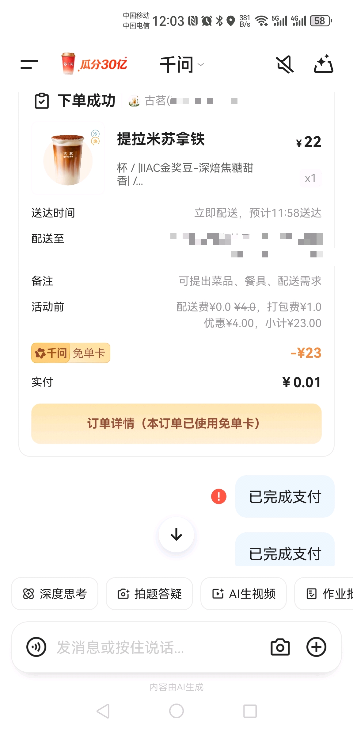 点杯咖啡花了半个小时终于成功了,说明千问下载和使用非常火爆,算力资源或者说带宽不