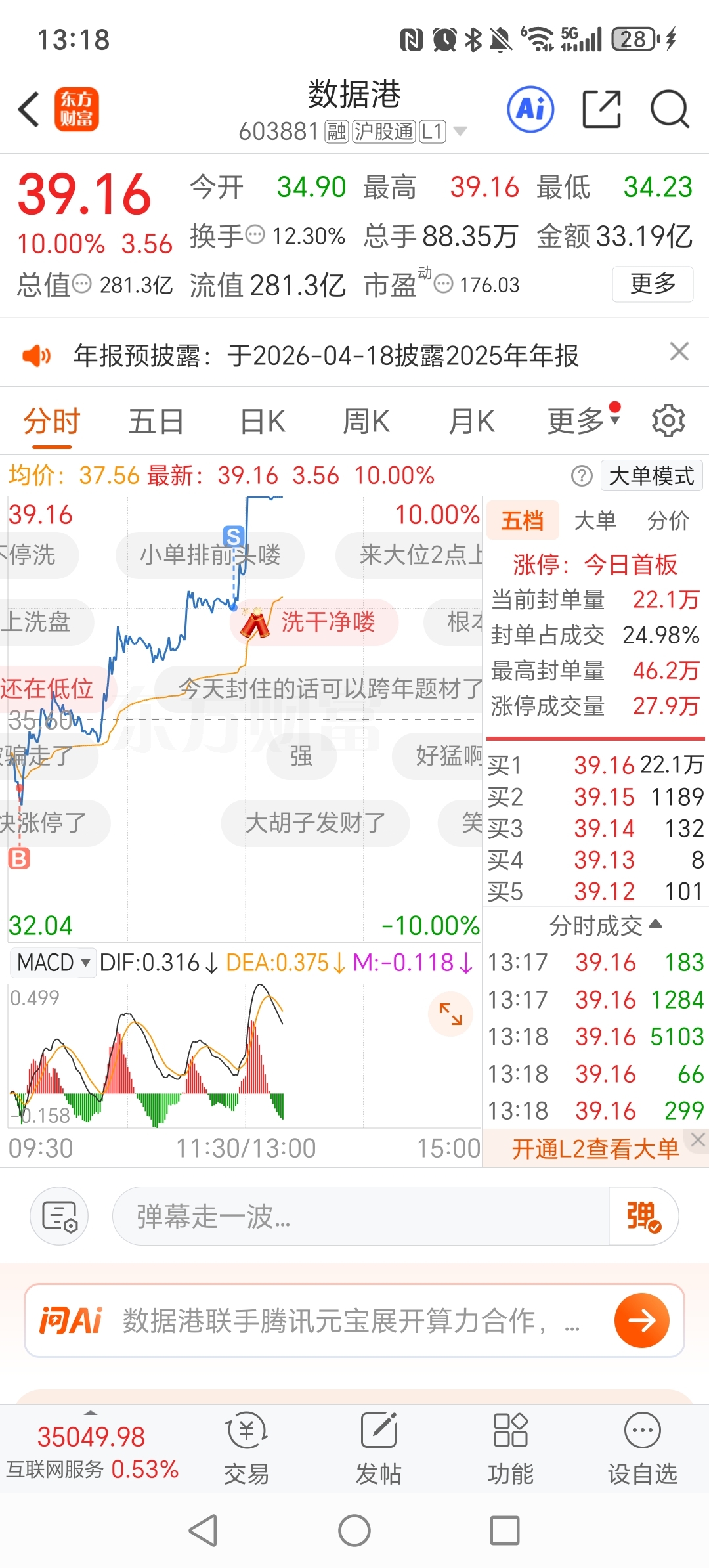 $数据港(SH603881)$ 我是不是被监控了,卖了就涨停。