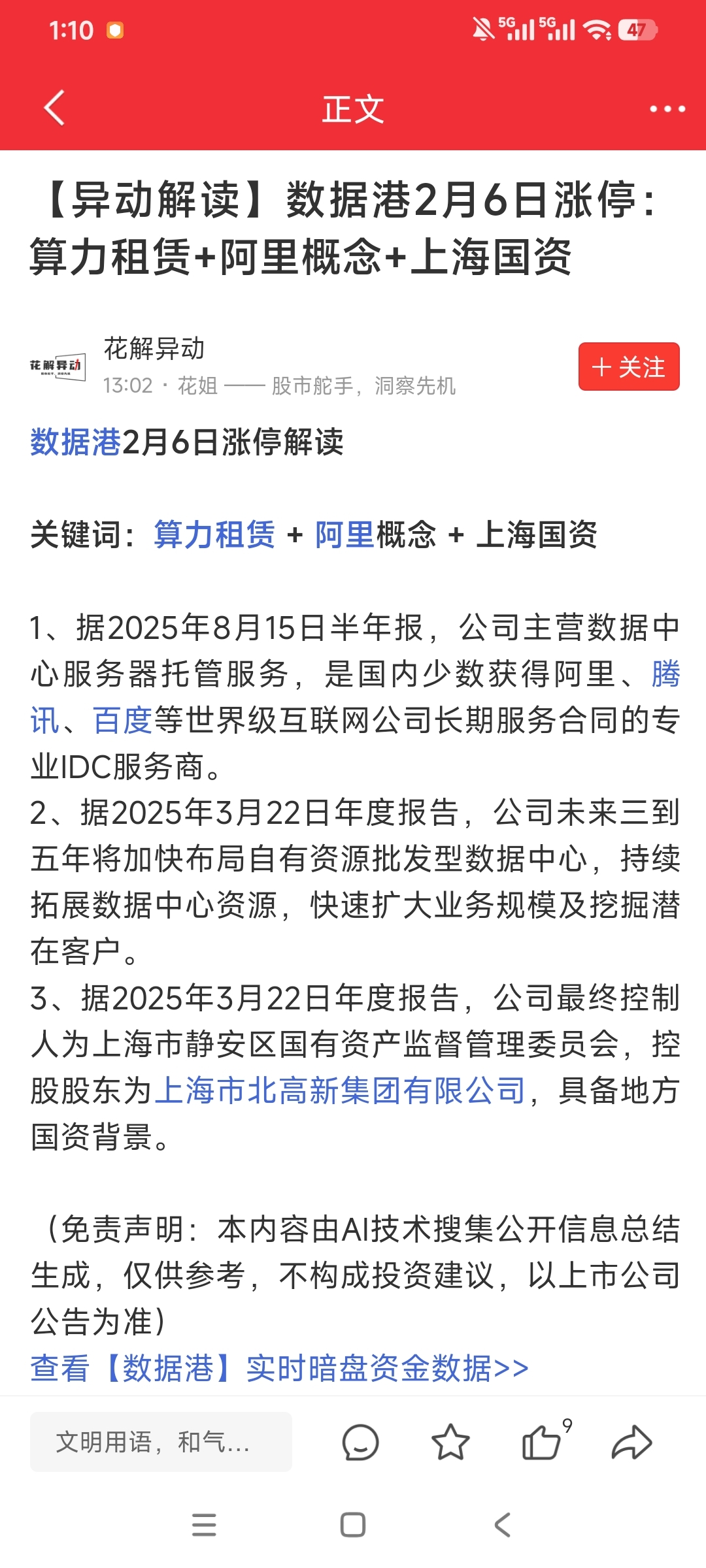 同是提供于,阿里,腾讯,百度,数剧中心,背后是上海国资委,阿里千问数剧算法,基本都是数据港提供的,俗称阿里的干儿子,阿里千问30亿请全民喝奶茶,吃外卖,火爆程度都把服务器干爆了,最利好谁,肯定是数据港了,30亿啥概念,其他几个大厂的总和还要多,全民参与,可持续性长,参与度广,会持续发酵的