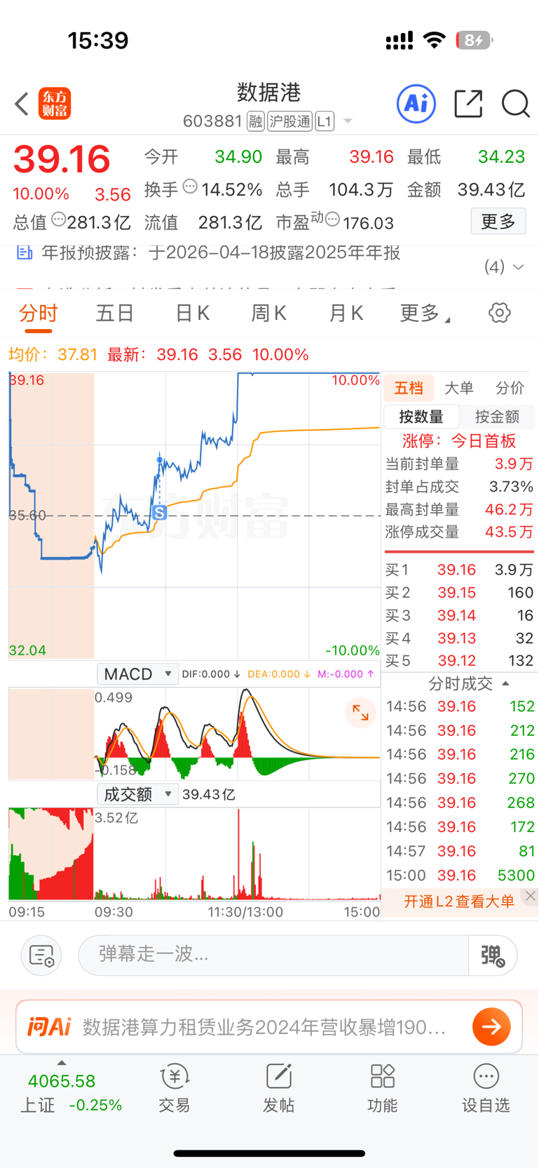 $数据港(SH603881)$ 守了几天,卖飞了