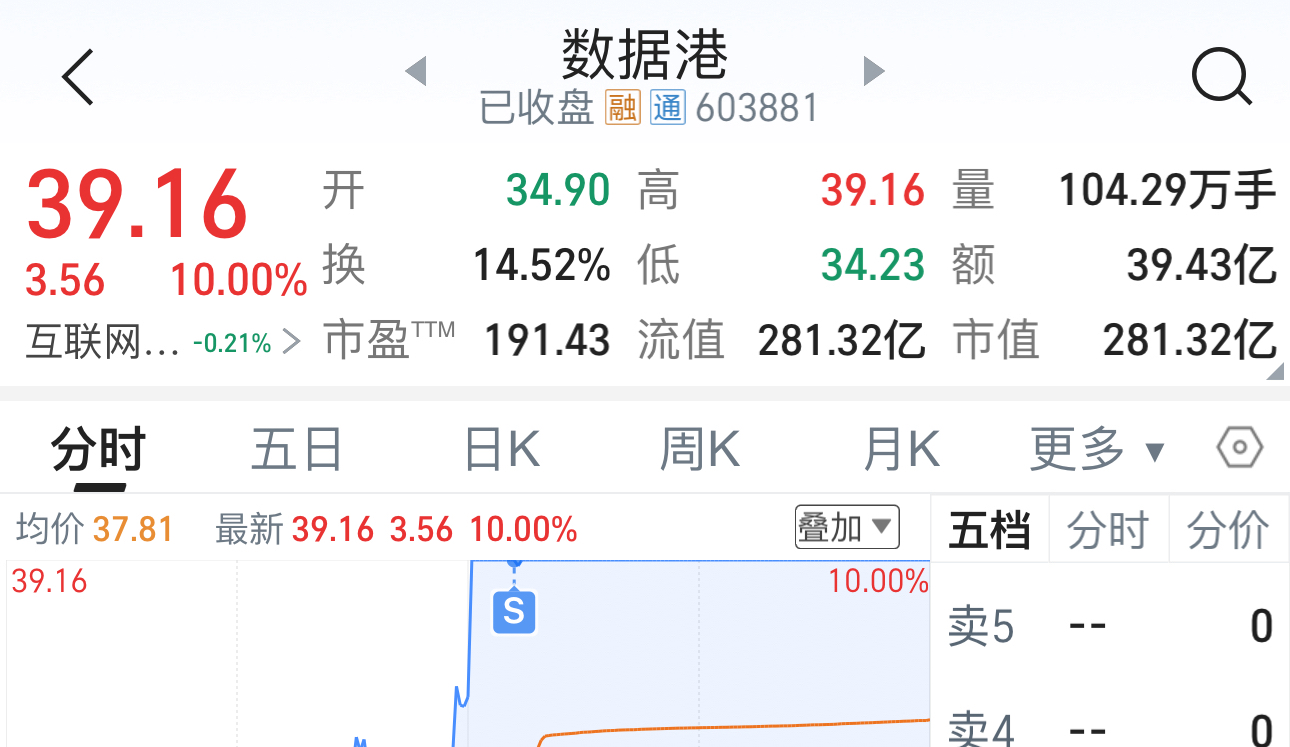 $数据港(SH603881)$ 虽然板上出了,祝你们周一继续吃涨停