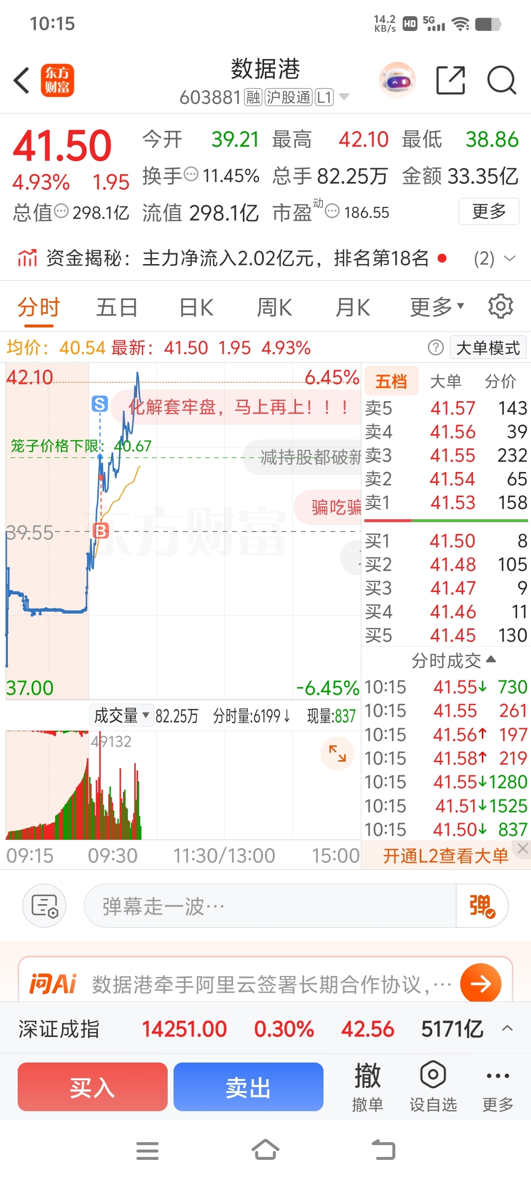 $数据港(SH603881)$ 今天能不能见证历史,破新高,没有后路,干